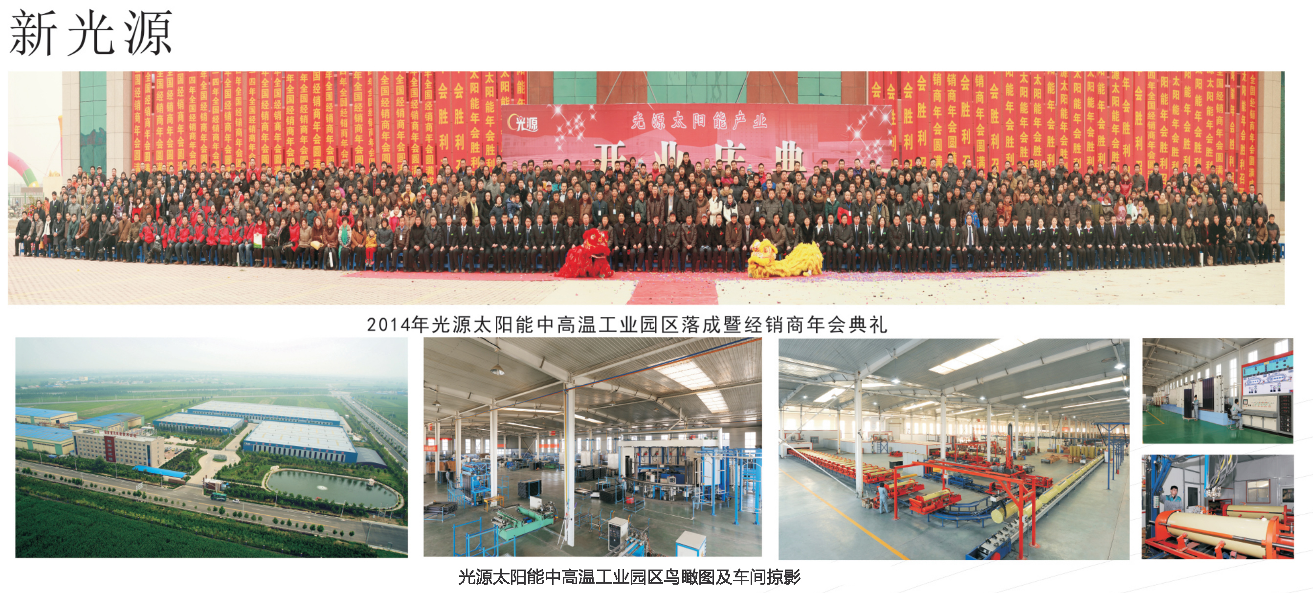2013年12月光源公司搬遷到新廠區(qū),如今的光源公司,以黨的路線方針和政策為指導(dǎo),以科技發(fā)展與創(chuàng)新為契機(jī),以太陽能開發(fā)與利用為訴求,不僅夯實(shí)了太陽能熱水系統(tǒng)等傳統(tǒng)產(chǎn)品的基石,更在新能源產(chǎn)品的開發(fā)中屢戰(zhàn)佳績。